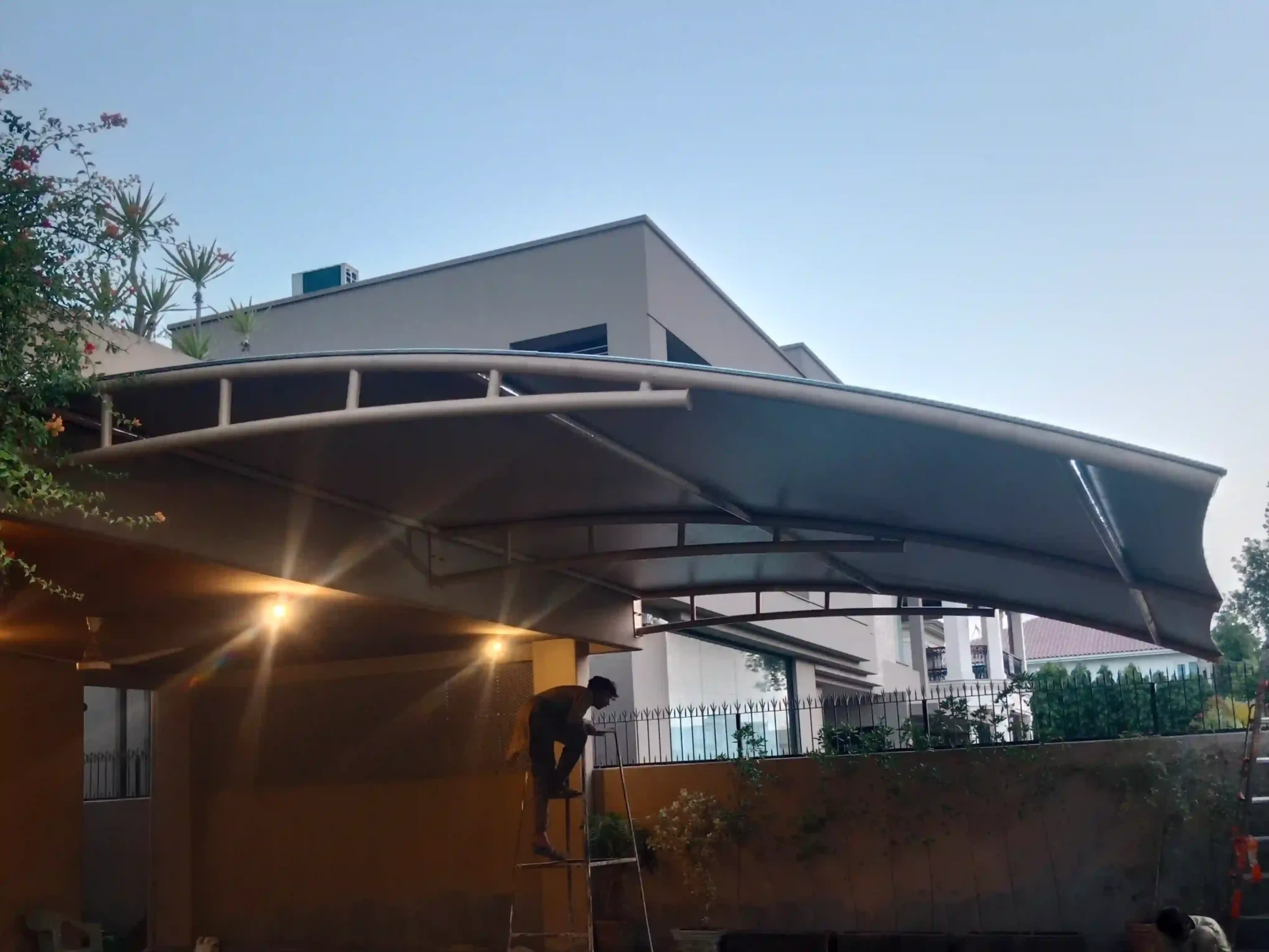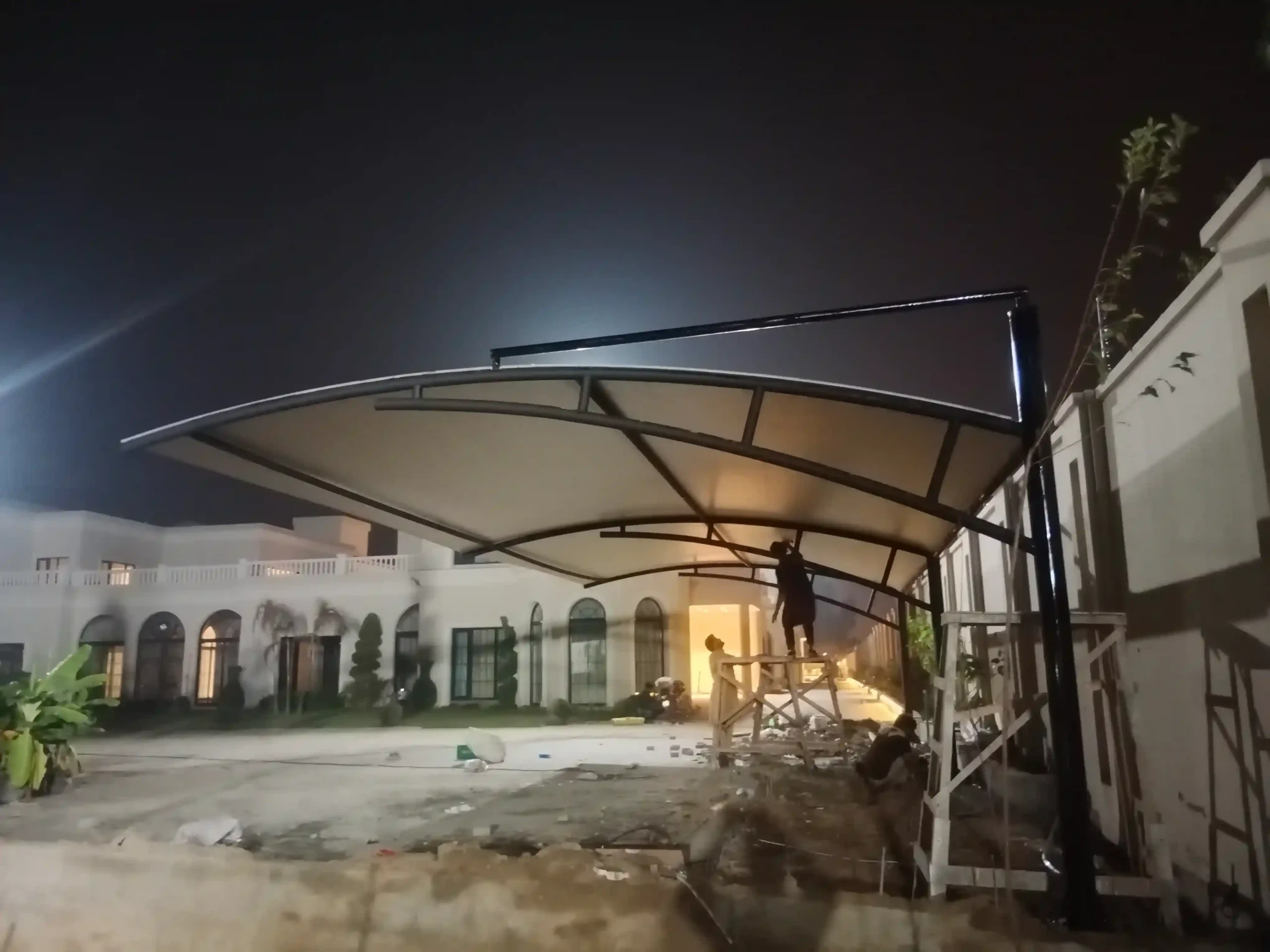 Our field team installs the steel structure, anchors, membrane and tensioning systems on‑site. We ensure proper alignment, tension, waterproofing and finish for a flawless outcome.