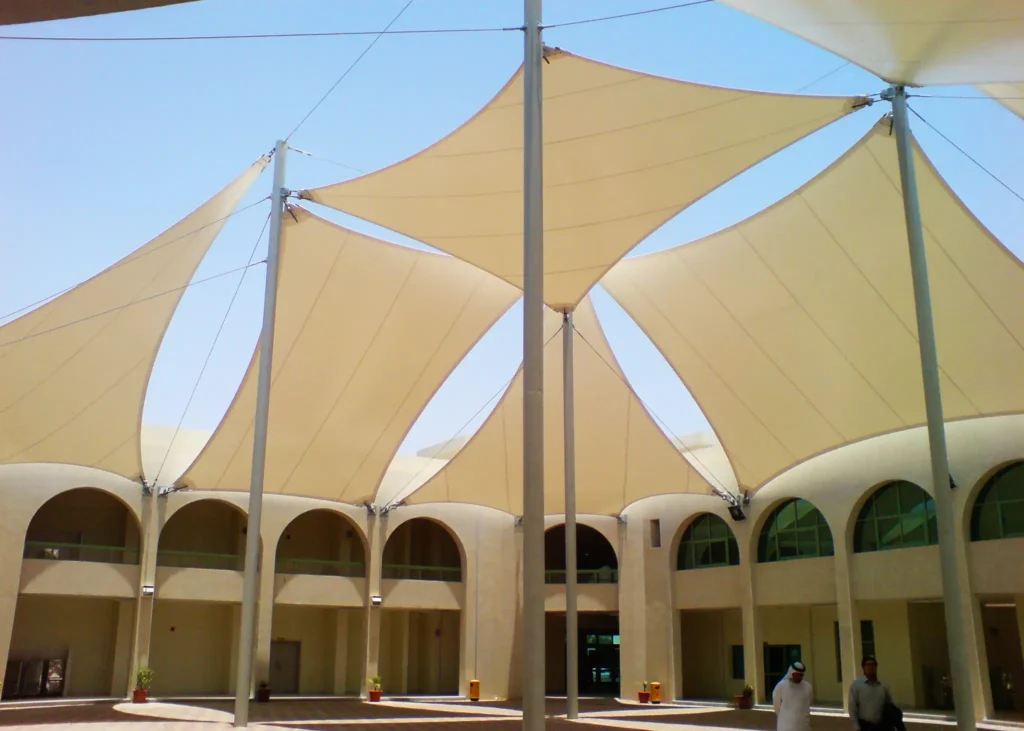 Tensile membrane structures are a smart choice for modern construction and shade systems, particularly when you need large‑span coverage, durability, design flexibility and cost efficiency. With a lightweight structure that allows fewer supports and quicker installation, these systems reduce material, labour and foundation costs. Their outstanding design freedom enables custom shapes and striking architectural forms that enhance any site. Thanks to superior weather and UV resistance, membranes remain durable with minimal maintenance.